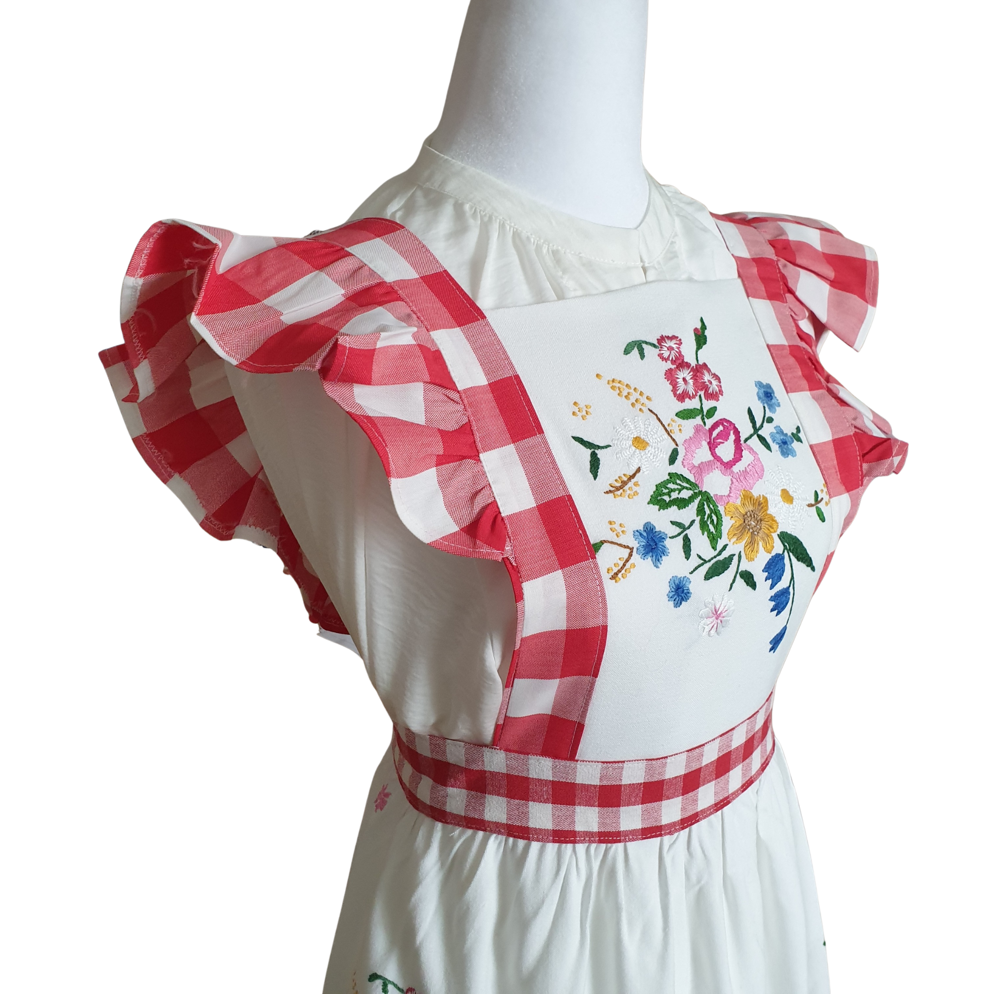 Midnattssolsblekta tyllgardiner och broderade dukar från kökssoffan i den norrländksa byn, får fortsätta som ett förkläde eller grytlapp.