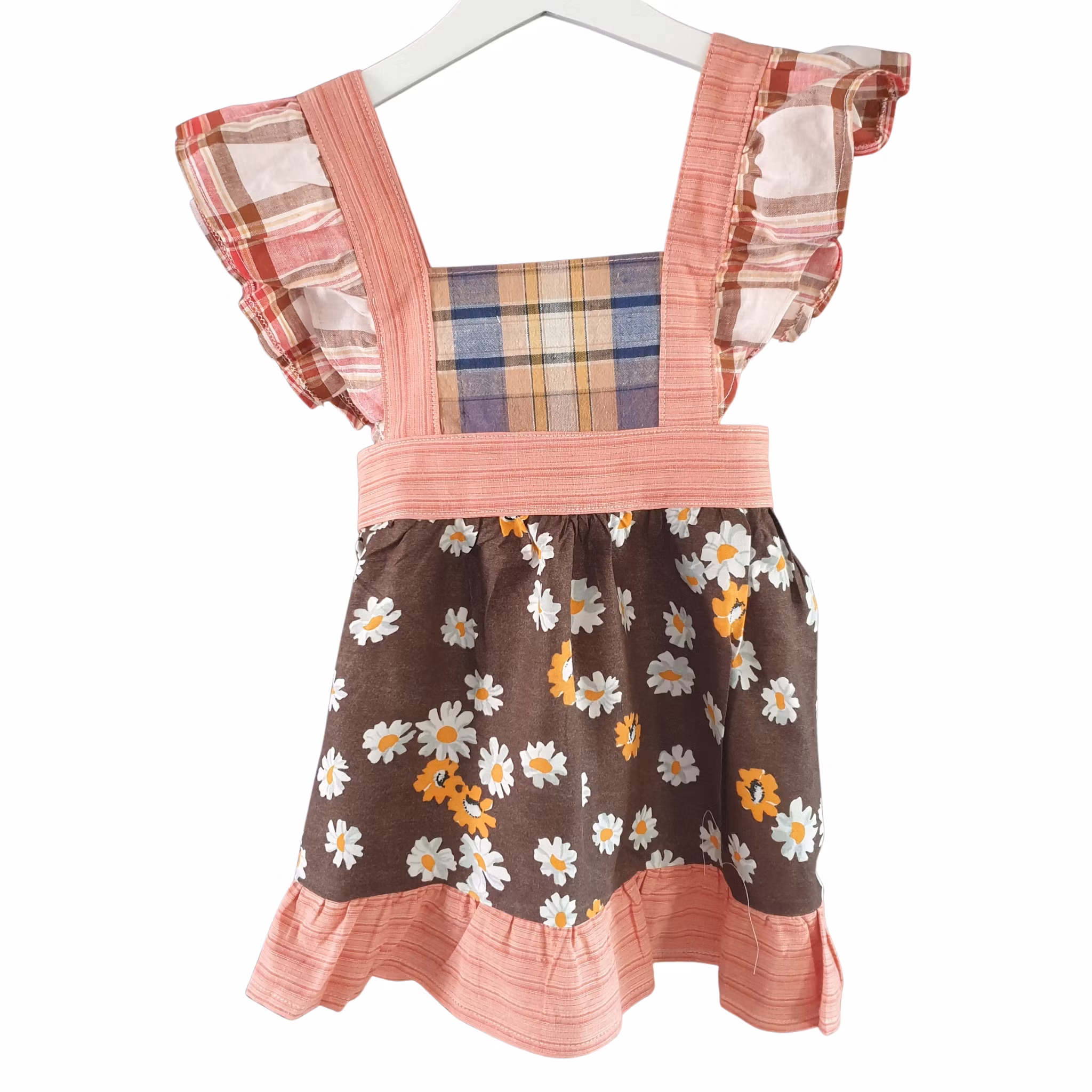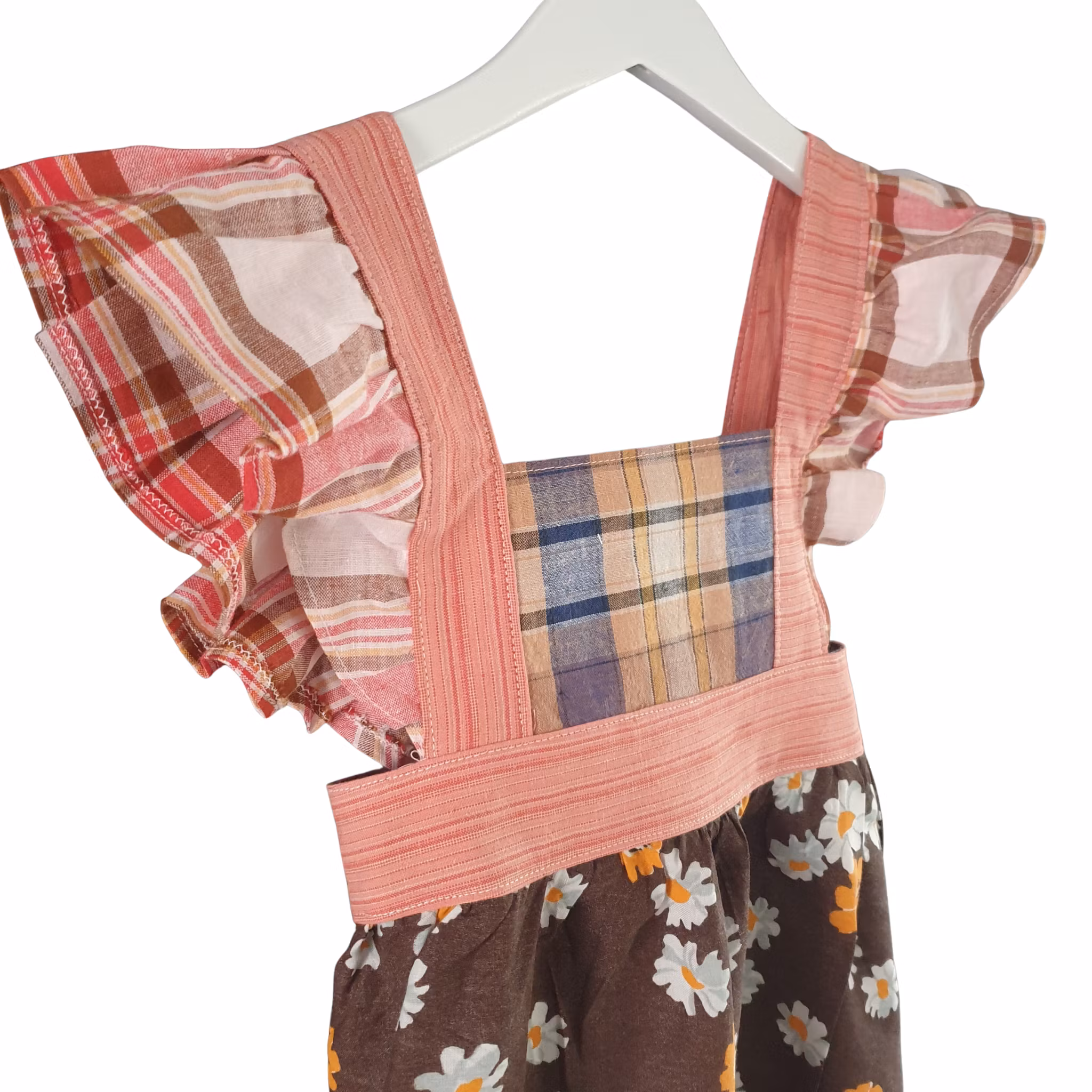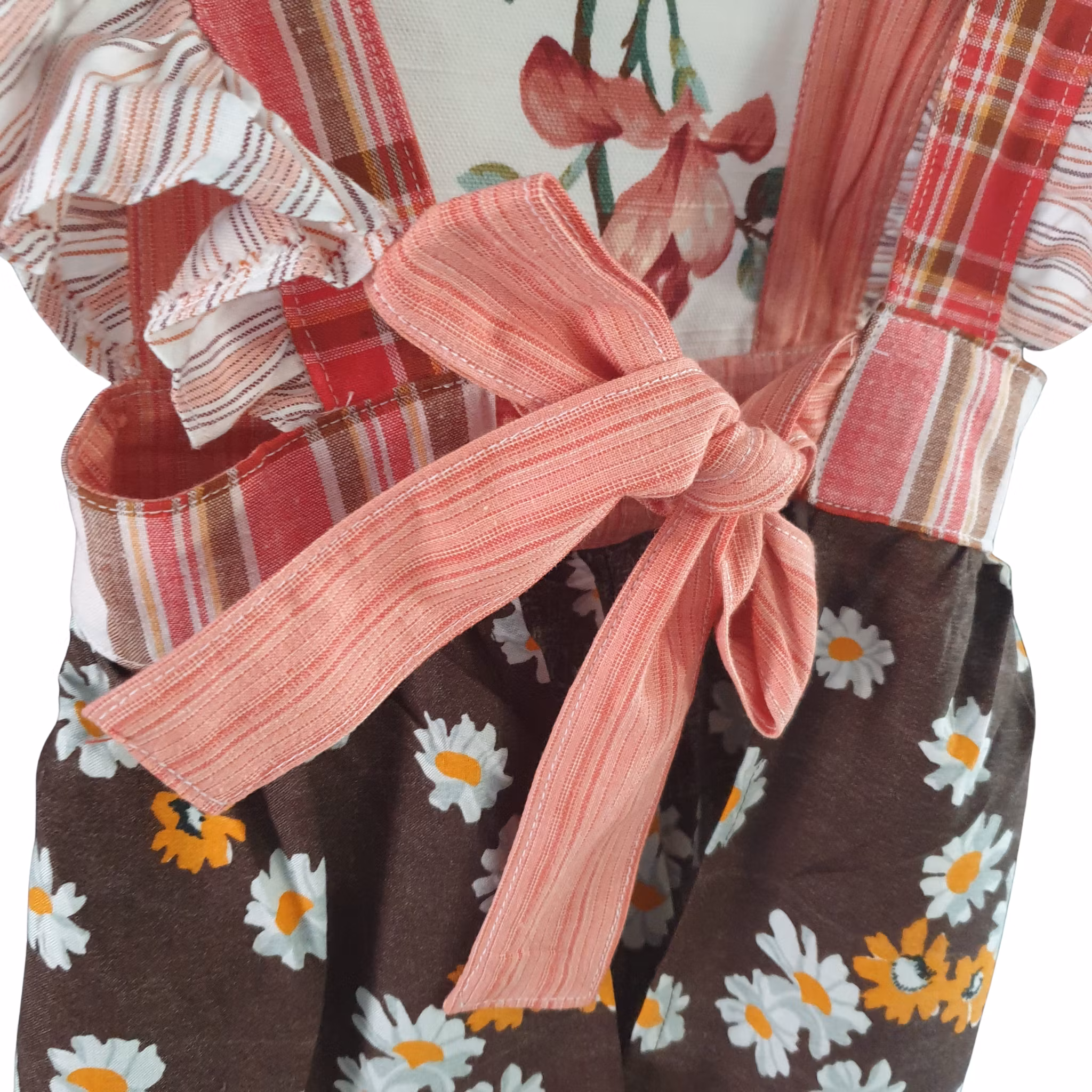 Material: Blommor, ränder och rutor med volanger blev ett sött litet förkläde.