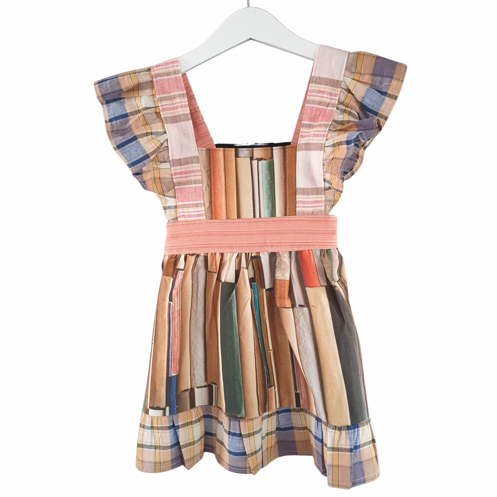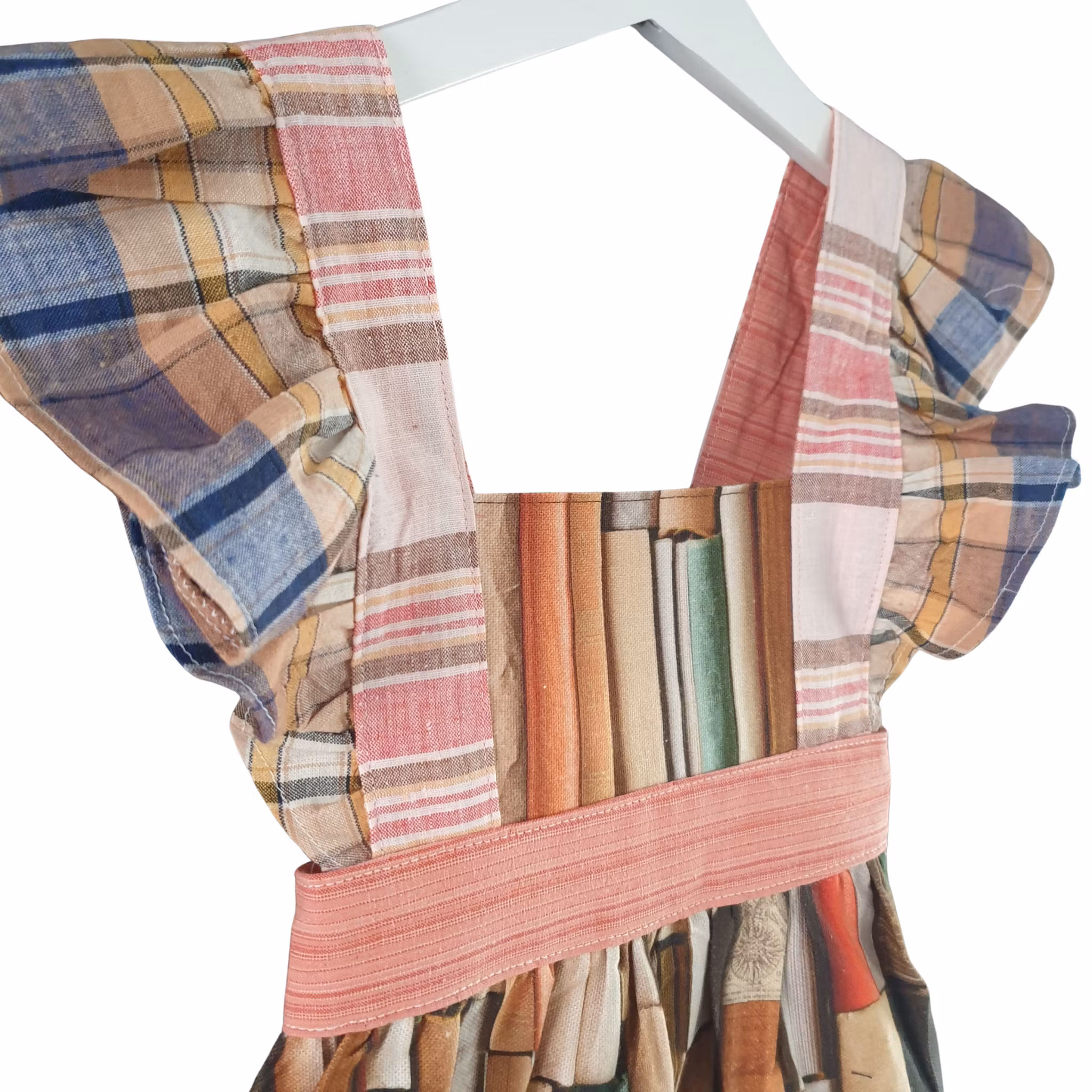Material: Tryckt tyg med böcker och sydda volanger blev ett sött litet förkläde.