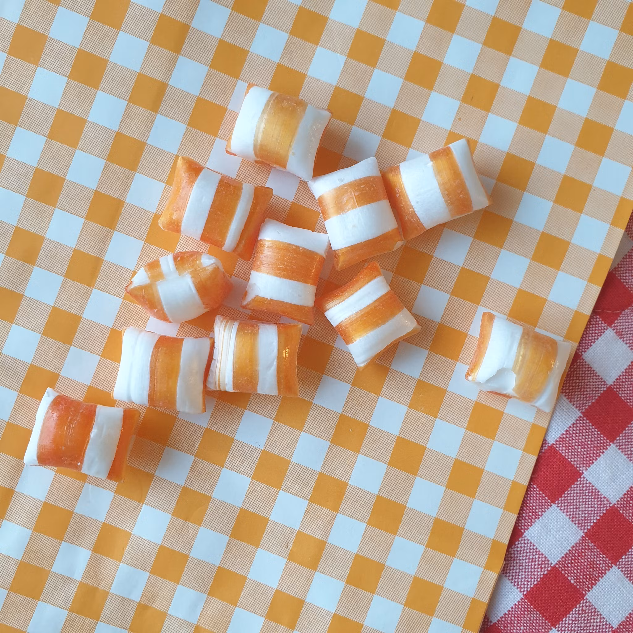 "Barndomsminnen med inspiration av Kajsa Kavat som sålde mormors polkagrisar på torget."