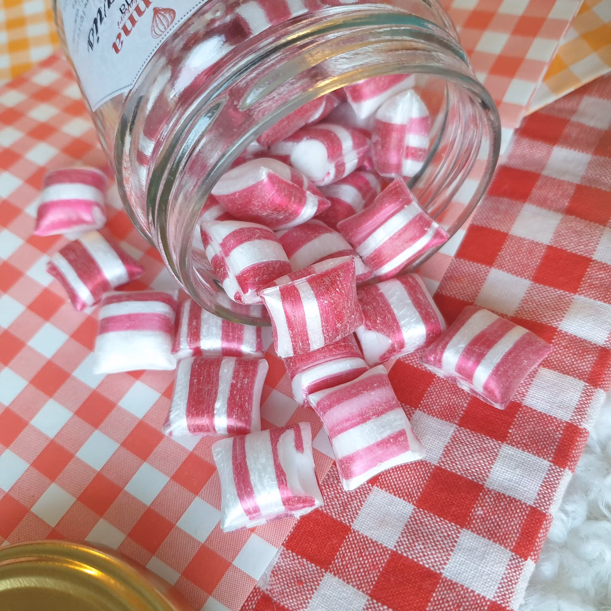 "Barndomsminnen med inspiration av Kajsa Kavat som sålde mormors polkagrisar på torget."