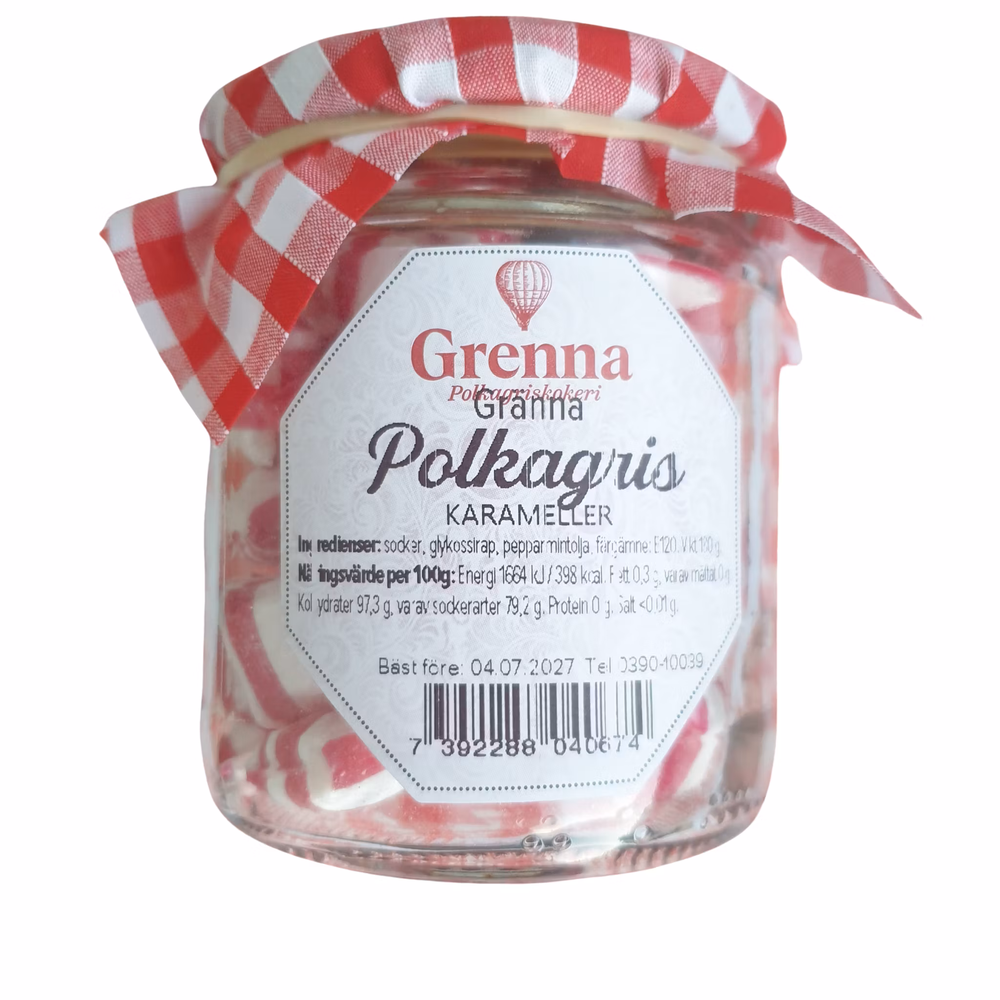 Innehåll: Äkta polkagriskarameller från Gränna!