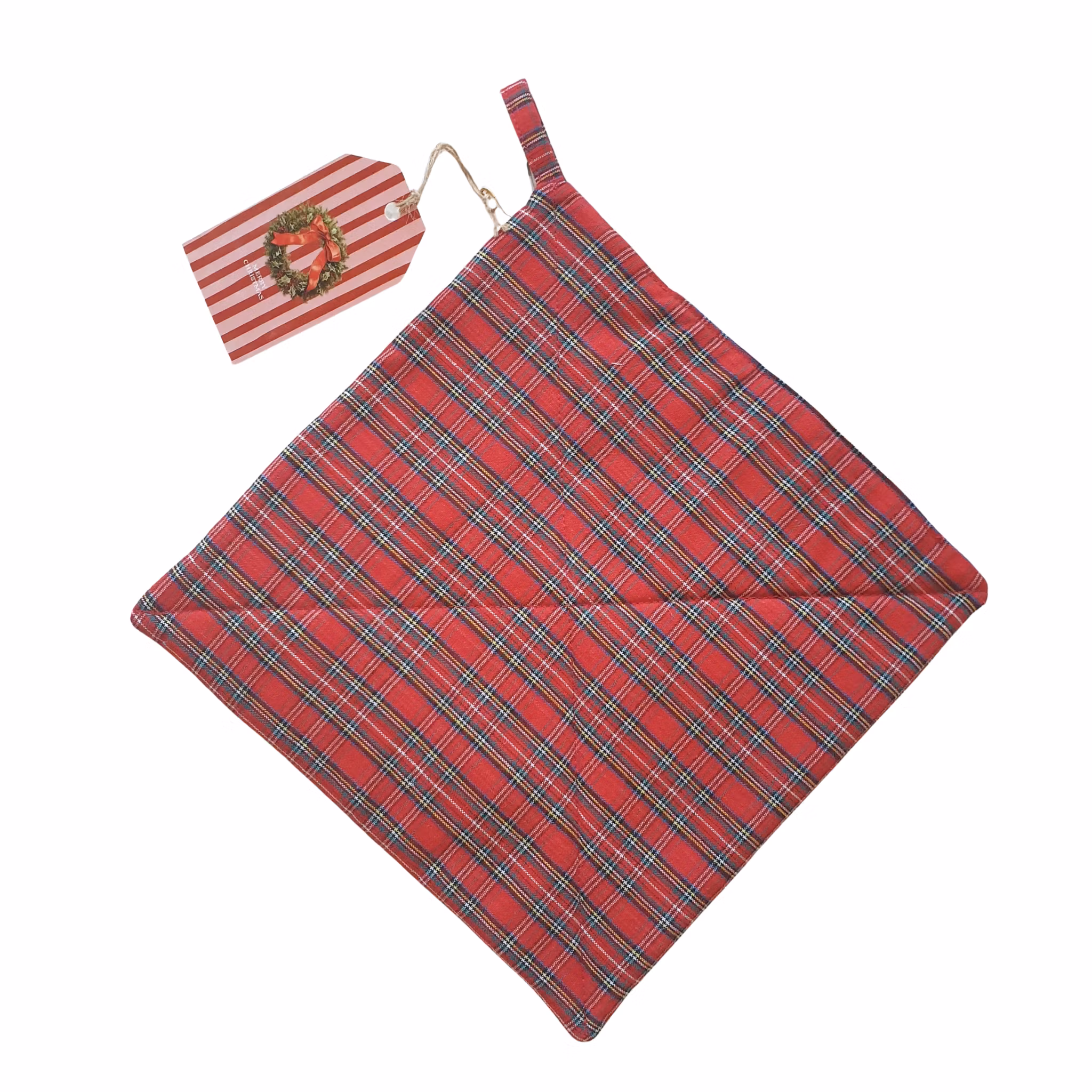 Material: En kvadratisk grytlapp gjord av en av en duk med små rutor.