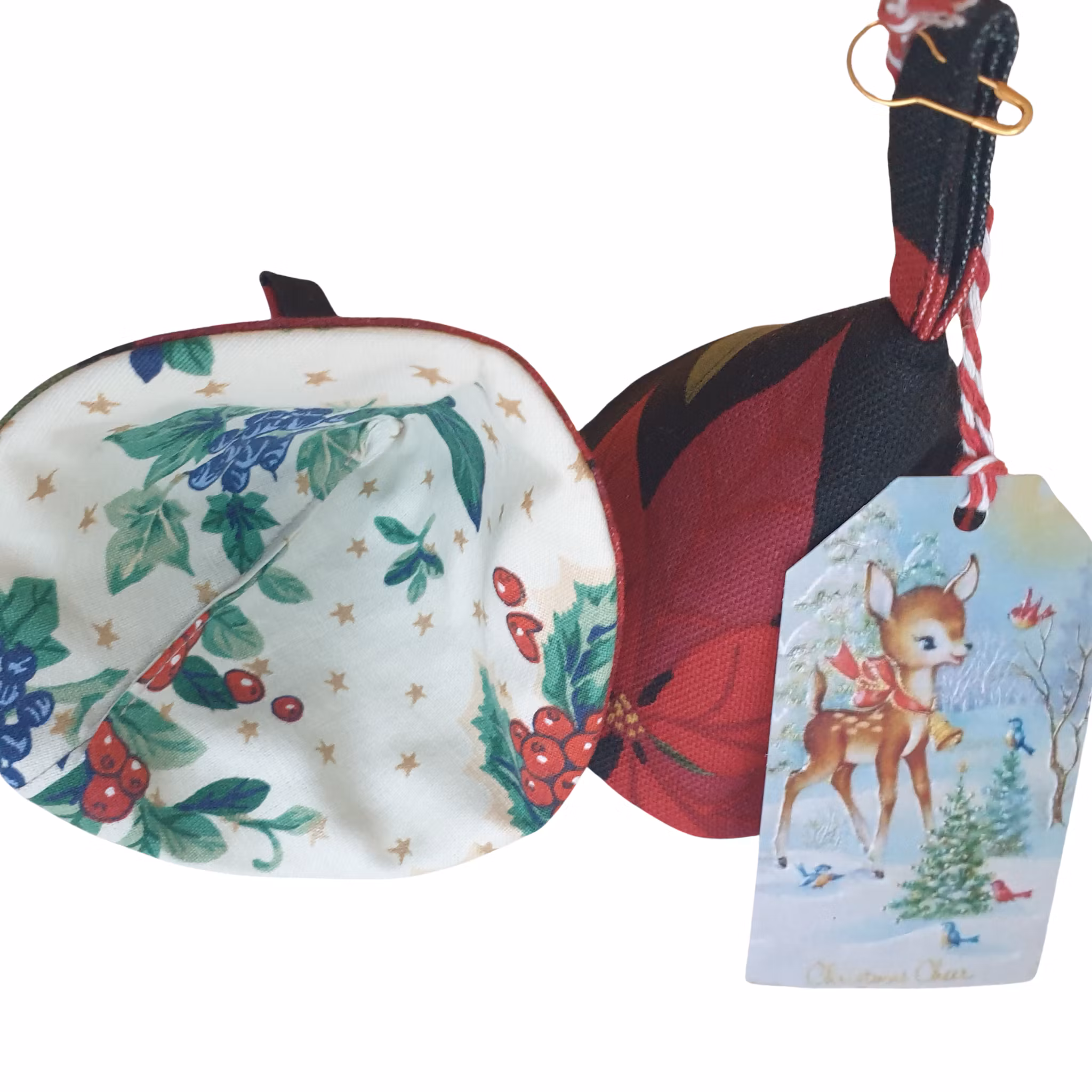 Material: Sydd av en gardin med julstjärnor på. Fodrade med värmeisolerat material.